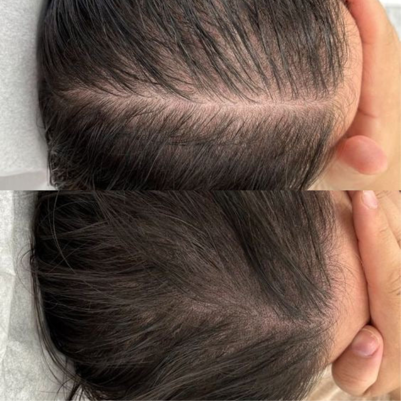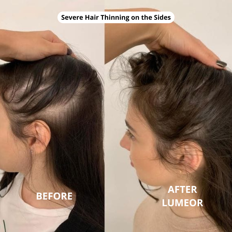 "I was honestly devastated by how thin my hair had become on the sides. I avoided tying my hair up and constantly tried to hide those areas. After a few weeks of using this, I could actually see less scalp and more density where it mattered most. My hair feels stronger, fuller, and I finally recognise myself again."