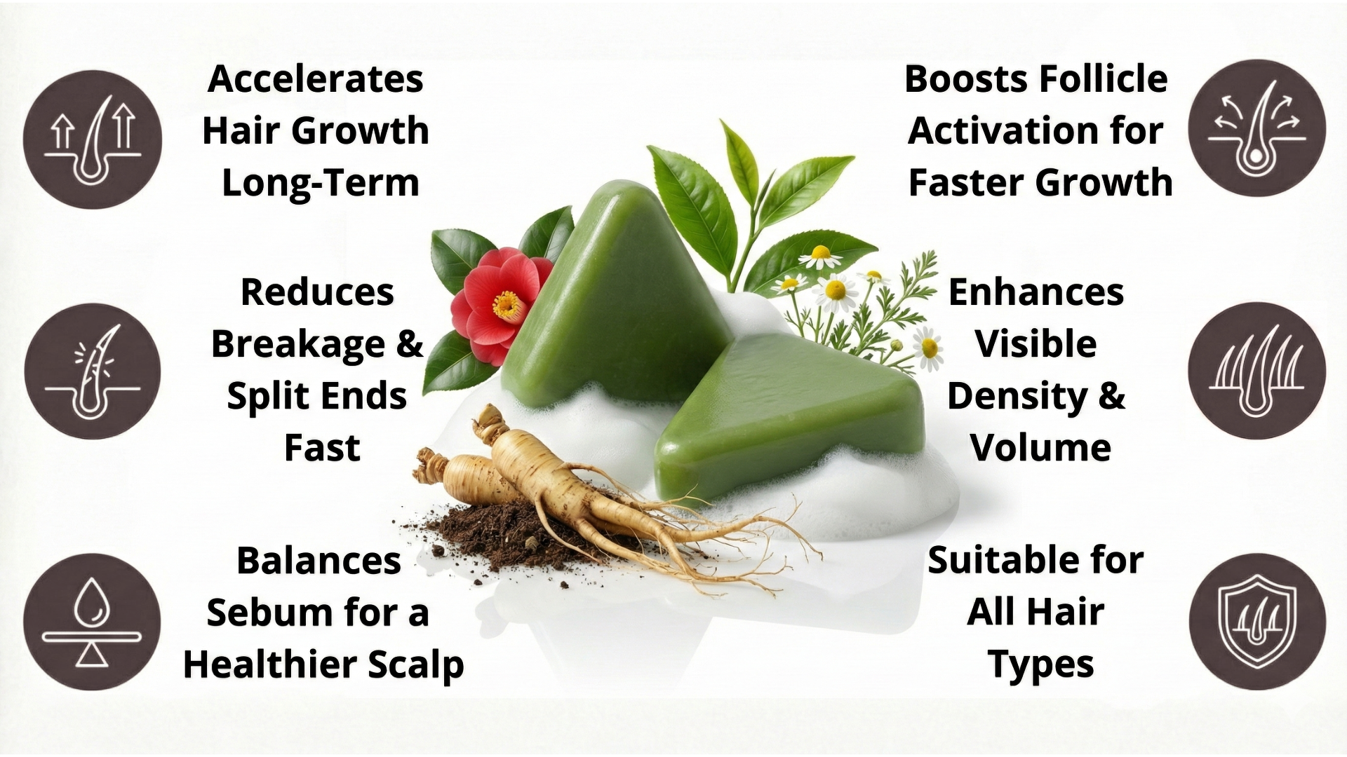 "Developed with scalp health in mind, the LUMEOR Korean Hair Growth Soap supports stronger hair and a balanced scalp. Its botanical K-Beauty formula helps improve hair quality, resilience, and visible density over time."